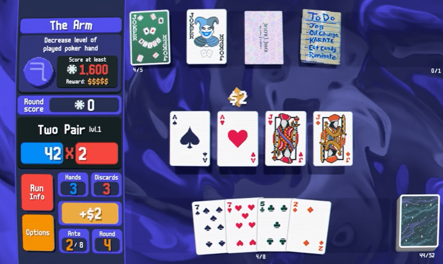 For instance, one joker might let you form a straight with just four cards instead of five, while another allows you to skip a card in a straight. With over 150 different jokers, each run can be wildly different depending on the combinations you choose. This flexibility allows you to experiment, turning each hand into a new puzzle and keeping you on your toes.