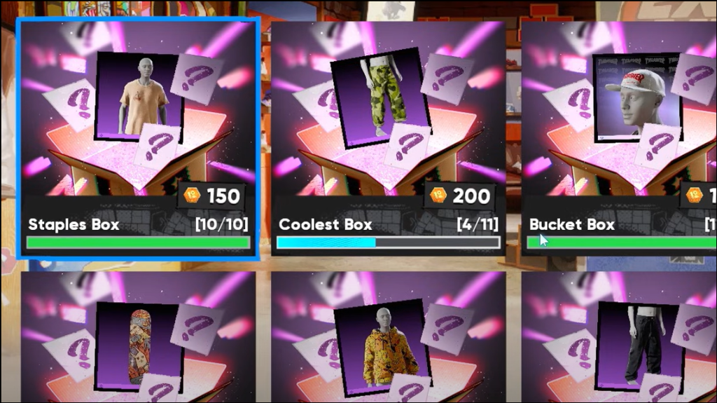Gear customisation is similarly disappointing. Much of it is tied to loot boxes, where basic items dominate and branded equipment is locked behind rarer “collector” drops. While technically earnable in-game, the system forces players through a grind that feels restrictive. The absence of accessible branded gear, something that made Skate 3 so immersive, stands out as a regression.